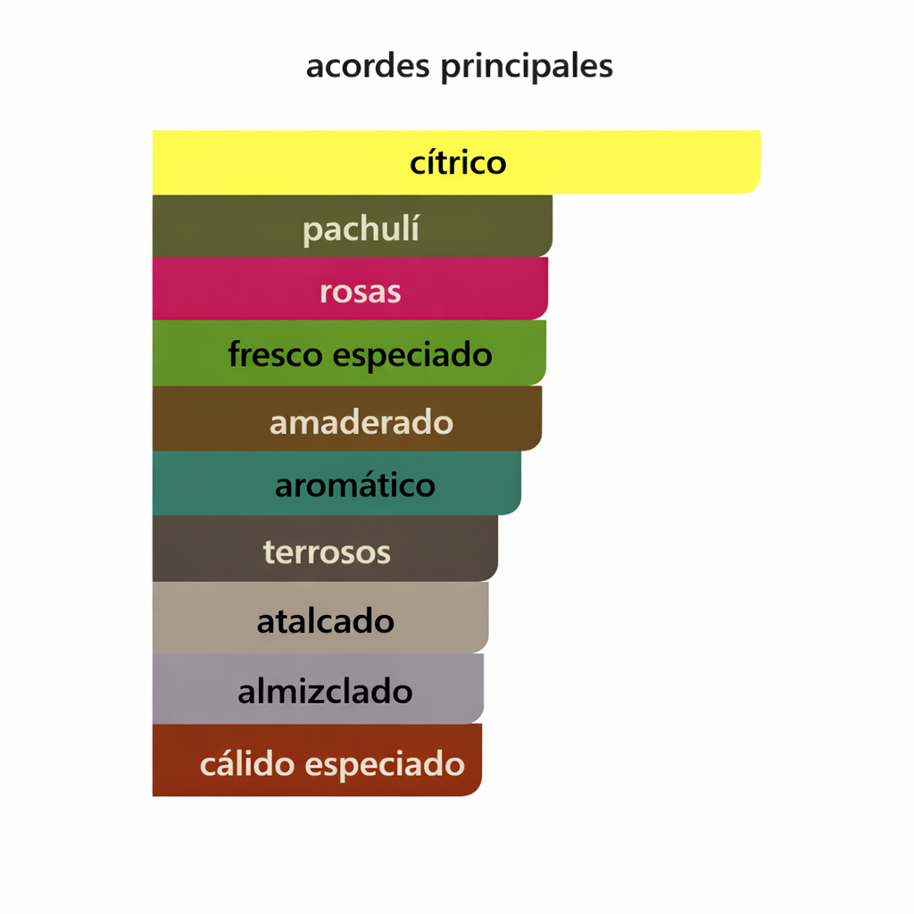 Desde el primer spray se percibe una salida fresca y ligeramente cítrica 🍊🍋, luego evoluciona a un corazón floral con rosas y jazmín que aportan feminidad y delicadeza 💐, y finaliza con un fondo cálido, dulce y amaderado que lo hace duradero y muy envolvente 🔥