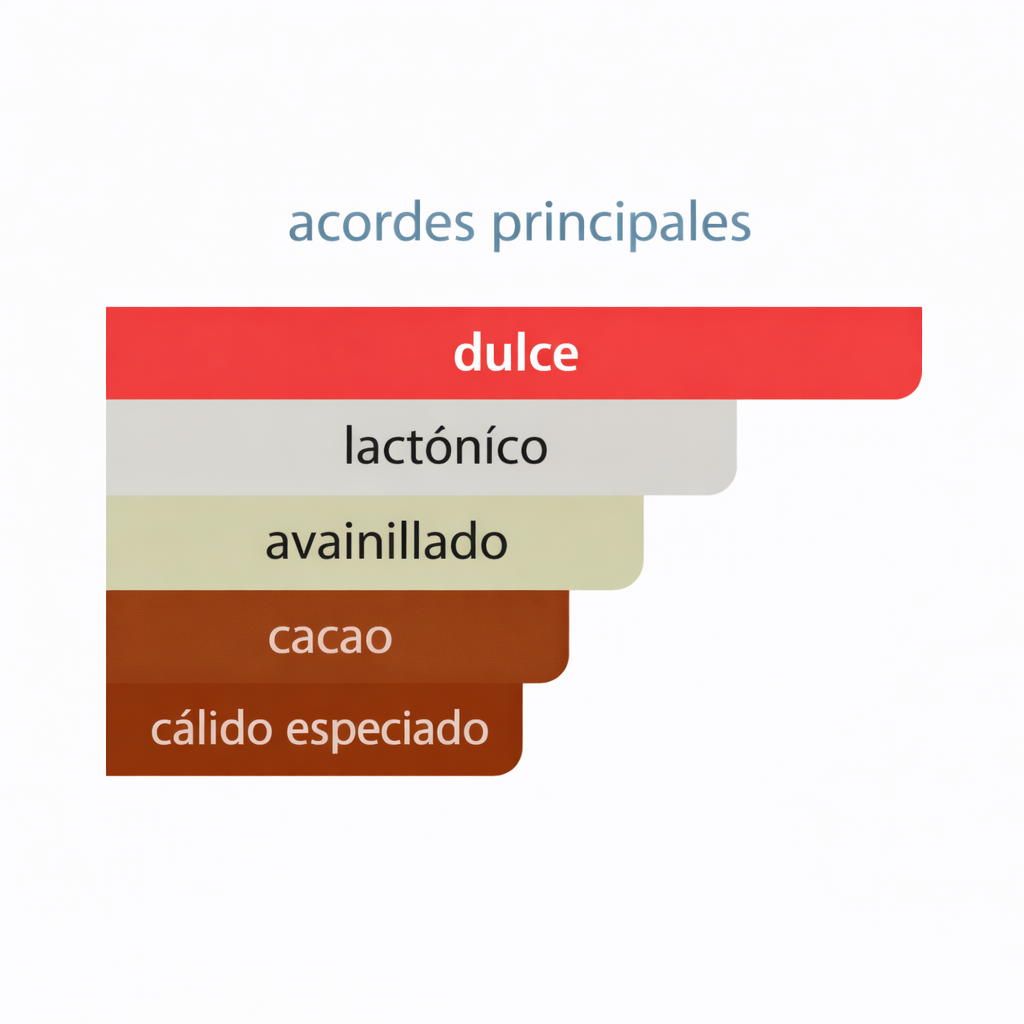 Este perfume destaca por sus acordes dulces, lactónicos, avainillados y de cacao, creando una experiencia olfativa que recuerda a galletas recién horneadas, crema suave y chocolate delicioso. 🍪🍫